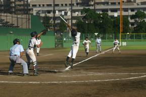 | 【試合経過】 1回の裏、常盤平中は四球で出塁後、バントが相手のエラーを誘い、一死1・2塁。石井選手が右中間にヒットを放つ間にホームをねらうが、タッチアウト。しかしその後、2・3塁から雨宮選手がセンター前ヒット、2点が入る。さらに相手のエラーで2塁に進み、嶌田選手がタイムリー2塁打。1点を追加した。 2回の裏、攻撃の手をゆるめない常盤平中は、相手のエラーから1点追加。さらに山本選手のセンター前で1点追加。 3回表、青戸中は2死から外山選手、武藤選手が連続ヒットするが、得点に結びつかず。 四回の裏、常盤平中は四死球で無死1・2塁とするが、青戸中はダブルプレーでピンチをしのぐ。 6回の表、先頭打者の永井選手がライト前ヒットで出塁したが後続が断たれ無得点に終わる。 7回の表、青戸中最後の攻撃も三者凡退に倒れ、常盤平中が2回戦に進出した。 |